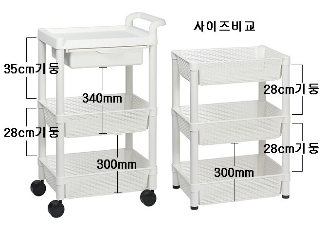 플라스틱 바구니카트 DB13(서랍형 3단 고정 유동 )