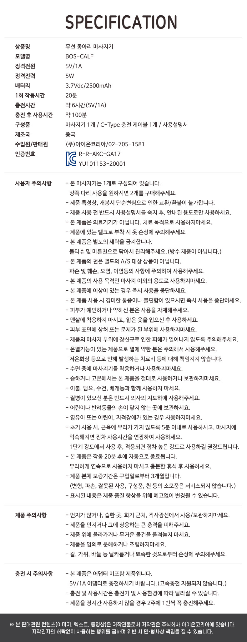 수입자 : 아이온코리아