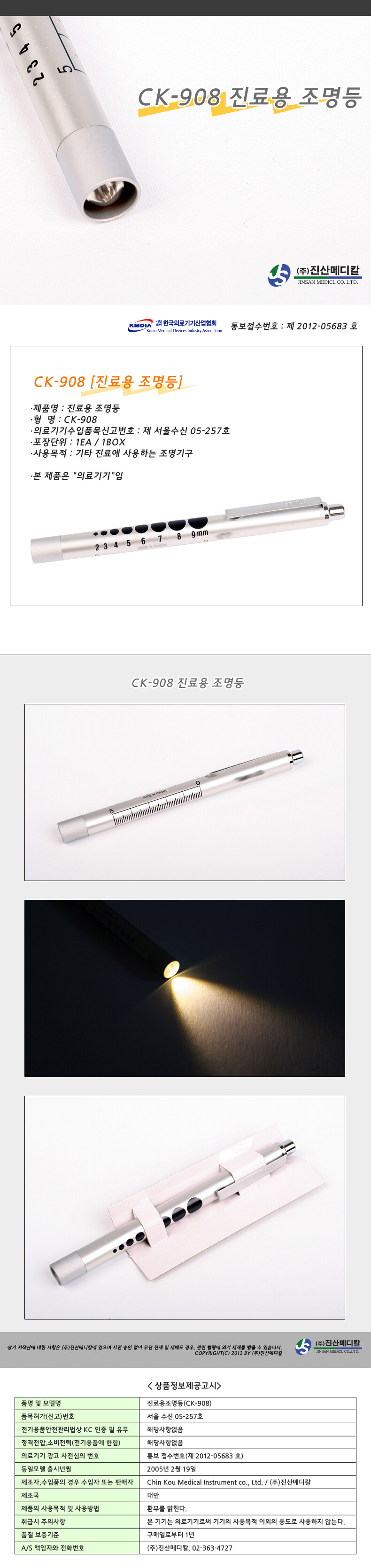 진료용 조명등(볼펜형 CK-908)