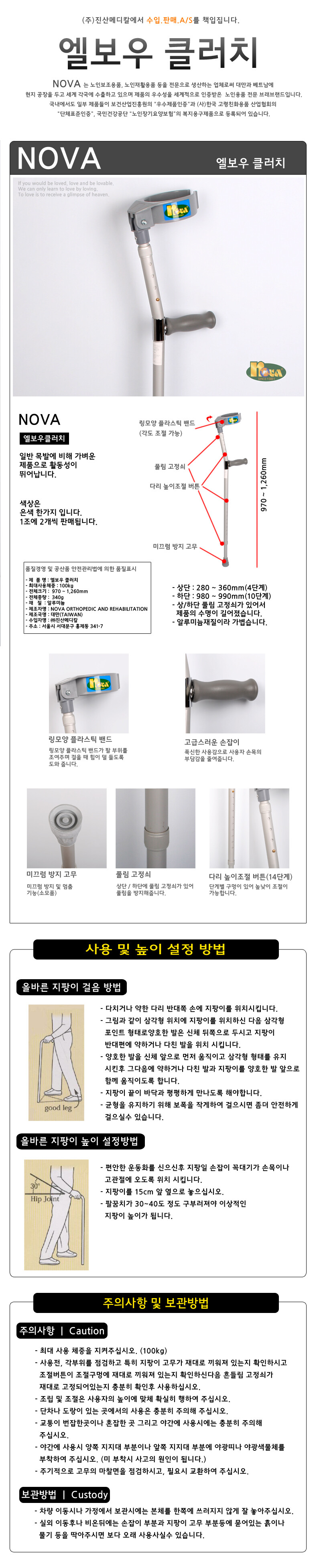 노바 엘보우 클러치 목발 1쌍